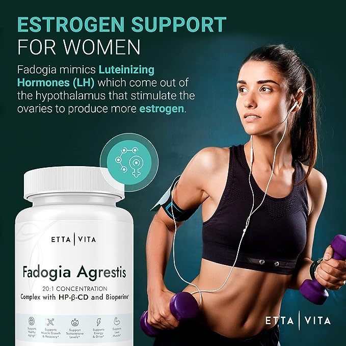 - Women Support: Fadogia mimics luteinizing hormones (LH) in the hypothalamus that stimulates the ovaries to create more hormones. Our estrogen supplement for women supports hormonal balance for energy, mood, recovery, and motivation.