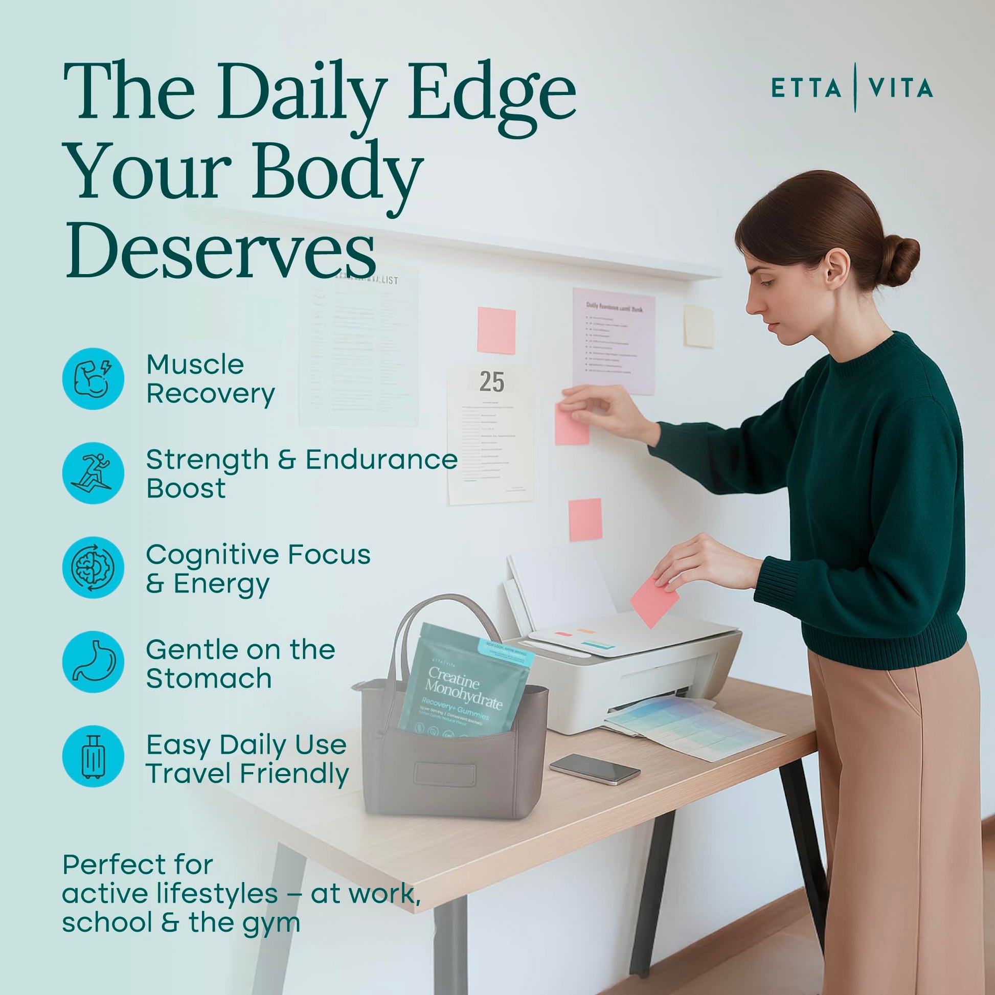 [Potent Formula & Improved Bioavailability] - Etta Vita’s unique formula of Creatine Monohydrate is effective, with 1g of Creatine per gummy. The gummies are coated in an MCT Oil, which improves bioavailability and absorption in the body. Creatine gummy helps reduce post-workout muscle fatigue, improve athletic performance, and increase muscle development and health.