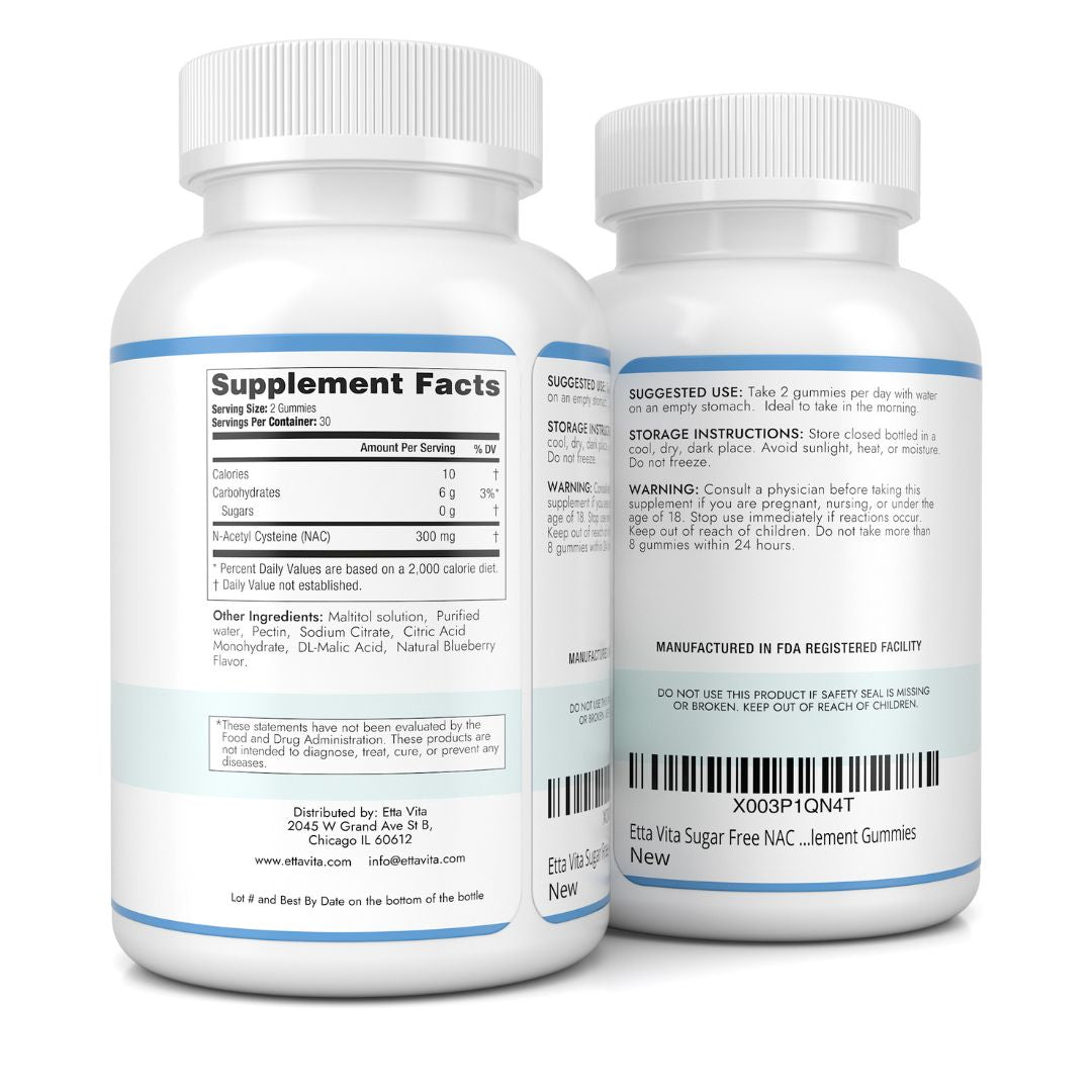 Our Sugar Free NAC Gummies contains 60 vegan gummies enough for 30 servings (1 month supply).